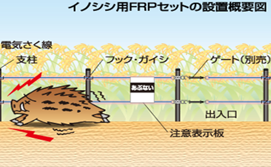イノシシの「鼻」は優秀で、周囲の臭いや感触をさぐる際に使われます。 敏感な鼻に電気ショックを与え、侵入を防止します。