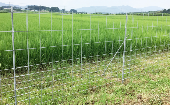 イノシシなどの野生動物の侵入を防止する金網メッシュ柵です。 自治体やゴルフ場、一般農家様において多数の採用実績がございます。